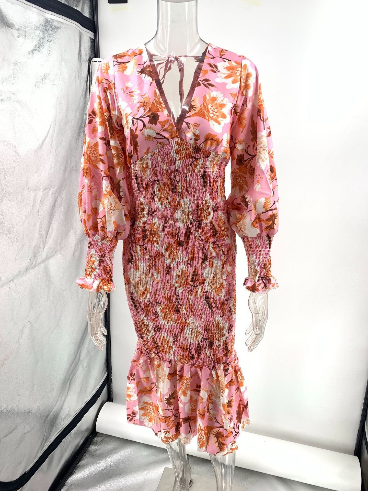 Onze Megan™ jurk biedt de perfecte combinatie van verfijning en comfort en is daarmee een onmisbaar stuk voor uw lente- en zomergarderobe. Deze dames midi-jurk is voorzien van een charmante bloemenprint, gepofte lange mouwen en een flatterende V-hals. Het aansluitende bovenstuk loopt naadloos over in het rokdeel, wat zorgt voor een comfortabele en flatterende pasvorm.